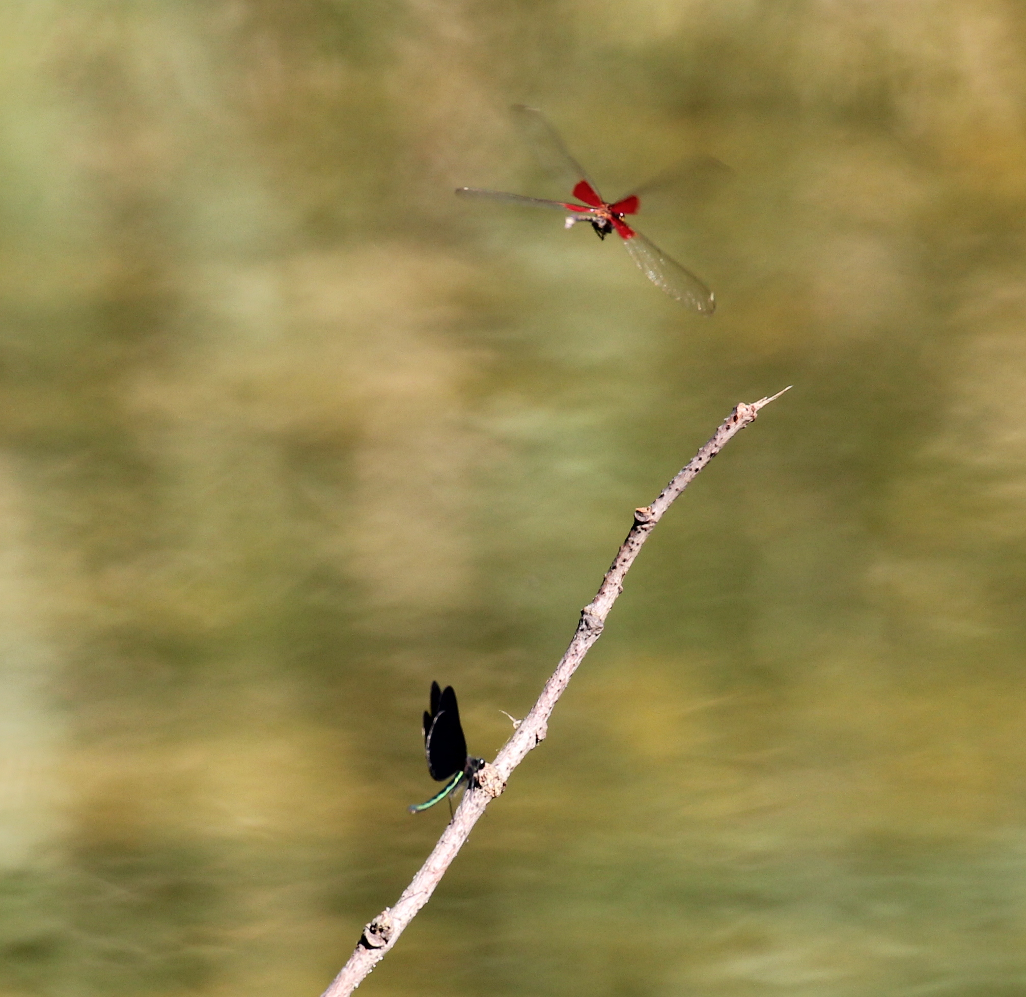 American Rubyspot (above) and Ebony Jewelwing, both damselflies.