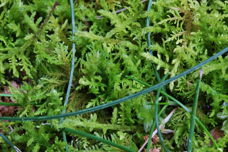 Moss may not be the cultural standard — in this country at least — but it provides the same air-cleaning services as turf grass does. It filters carbon dioxide out of the air and retains moisture. Easy peasy. And moss only needs a tiny fraction of the water a turf lawn needs; just a couple minutes in the morning will keep moss happy, while lawns need extended deep watering several times a week. And if it gets dry, moss will just curl up and wait for the water to come, when it revives itself. Just try that with brown grass.