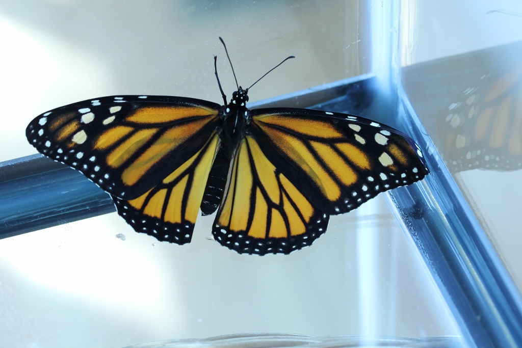 When they emerge from the chrysalis their wings are all crumpled up and they have to hang motionless for a while to pump blood through the veins to inflate the wings. You can actually see them slowly straightening over the first few minutes until finally the butterfly looks fully “inflated.”