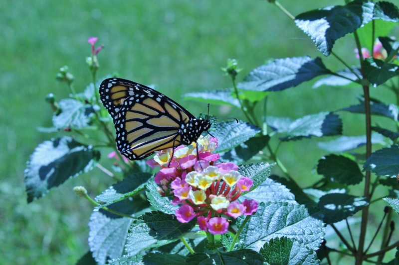 I worried that she’d injure herself if I kept her in there much longer. I consulted with a friend who has much more experience with butterflies, and she advised me to go ahead and release her. And since it looked like we had a good break in between rain showers, I decided it would be okay to let her go.