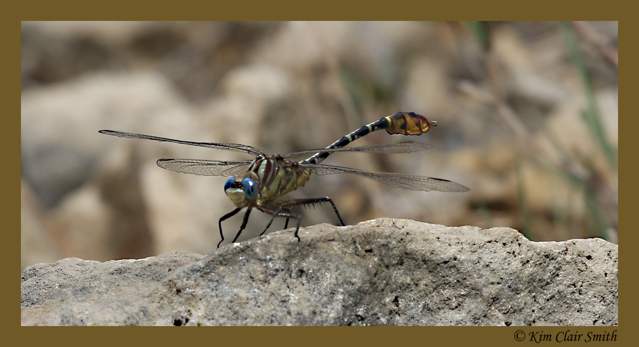 Clubtails tend to rest on the ground rather than on vegetation like some other dragonfly families. They often use large rocks as hunting perches, and one of the best ways to find them is to search the surface of each and every rock along the edge of a body of water. It’s not really that difficult to track them down, but there’s a slight problem in getting photos of them. You see, since their prey consists of insects flying over the water, they tend to perch with their faces turned toward the water — and away from me standing on the shore. And so that has meant that it’s been hard for me to get photos of their beautiful faces.