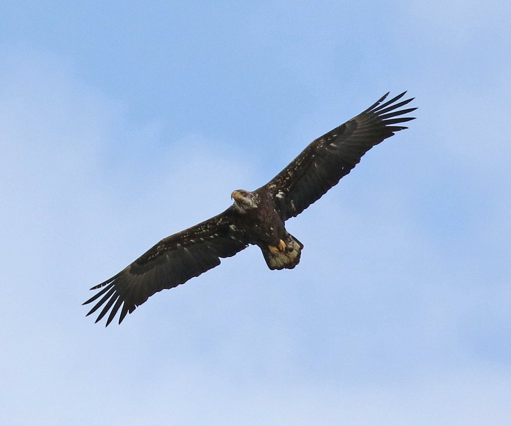 Immature bald eagle soaring over me at the Magee Marsh beach