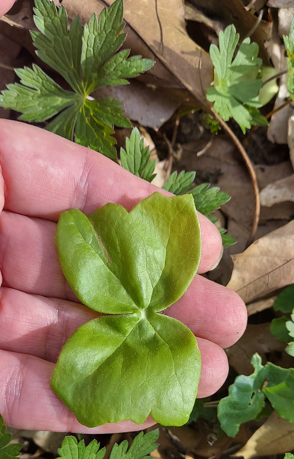 The other day I treated myself to a long walk with a friend to look at more spring wildflowers. I’d gotten a hot tip on the location of a plant I’d never seen before — goldenseal (Hydrastis canadensis) — so we set off into the woods with that as our primary goal for the day.