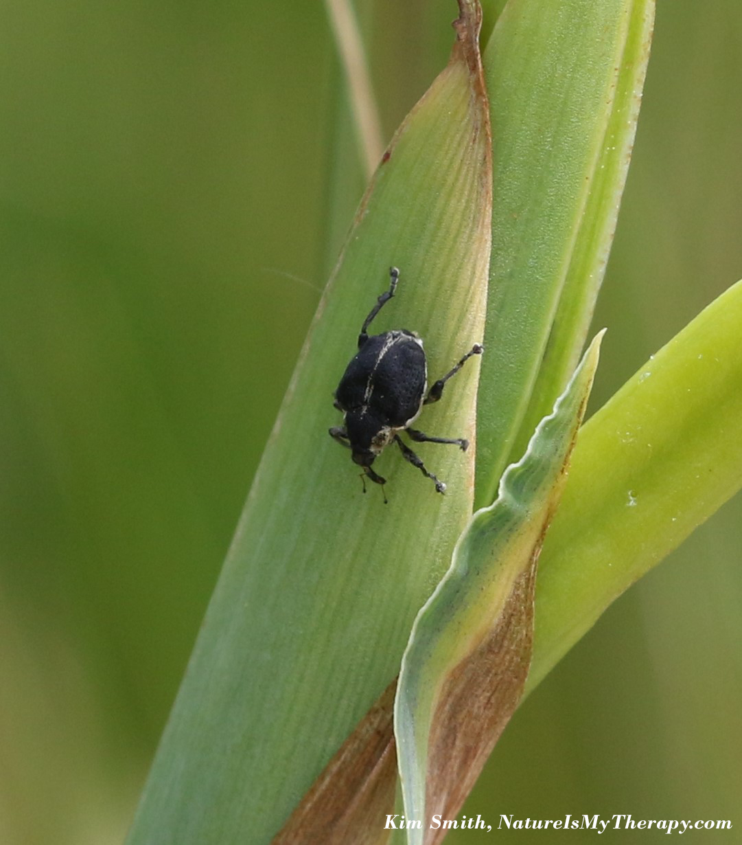 I remember the day I discovered these weevils on irises and came home to find out that they were actually called iris weevils. Every year since then, I can’t pass a patch of irises without checking for their presence. I love all kinds of weevils because of that dorky snout that protrudes from their little faces…so cute. Weevils aren’t true bugs (Hemiptera) either, but rather are in the beetle family (Coleoptera). The true bugs are distinguished by having sucking mouth parts, whereas beetles and other insects have chewing mouth parts more similar to our own. (Well, vaguely similar to our own, I guess. There are some crazy insect mouth parts out there!)