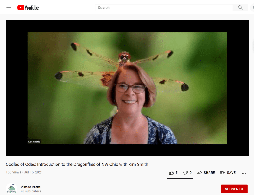 • Ron, thank you for the kind words about my program. While I’ve led a few dragonfly field trips, this really was my first public program, on Zoom or anywhere else. In my preparations I’d read an article that recommended you practice one hour for each minute of your program. That would have meant 45 hours of practice, and I didn’t get anywhere near that, but I did do about eight full run-throughs of it beforehand to get comfortable with the material so it would feel like a more natural presentation style.