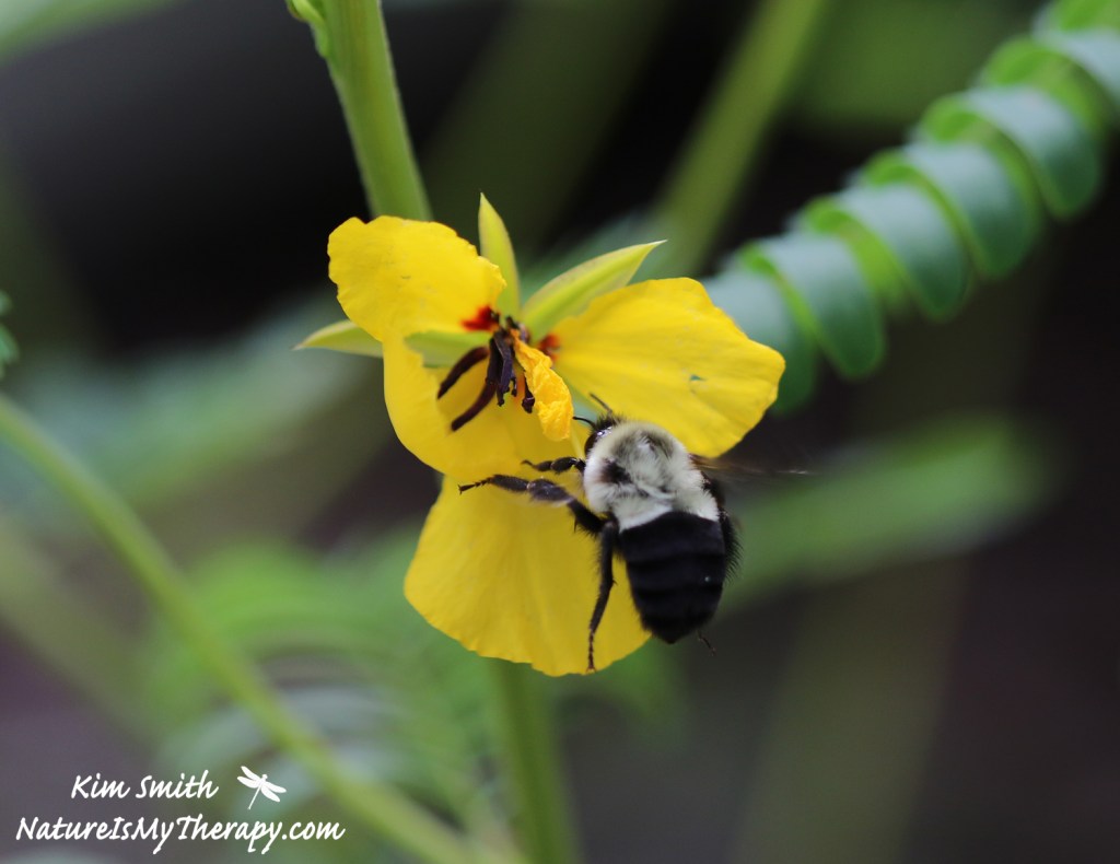 There’s a lot to love about this annual native plant — its pretty compound leaves, the beautiful yellow flowers with deep red stamens, and the way it sways gently in the breeze beside my patio. Oh, and the way its brown seed pods twist into spirals in the fall before popping open to scatter the seeds for next year’s crop. I can spend hours watching the bumblebees “buzz pollinating” it on a summer morning. Buzz pollination occurs when the bee uses vibrations to shake the pollen loose.