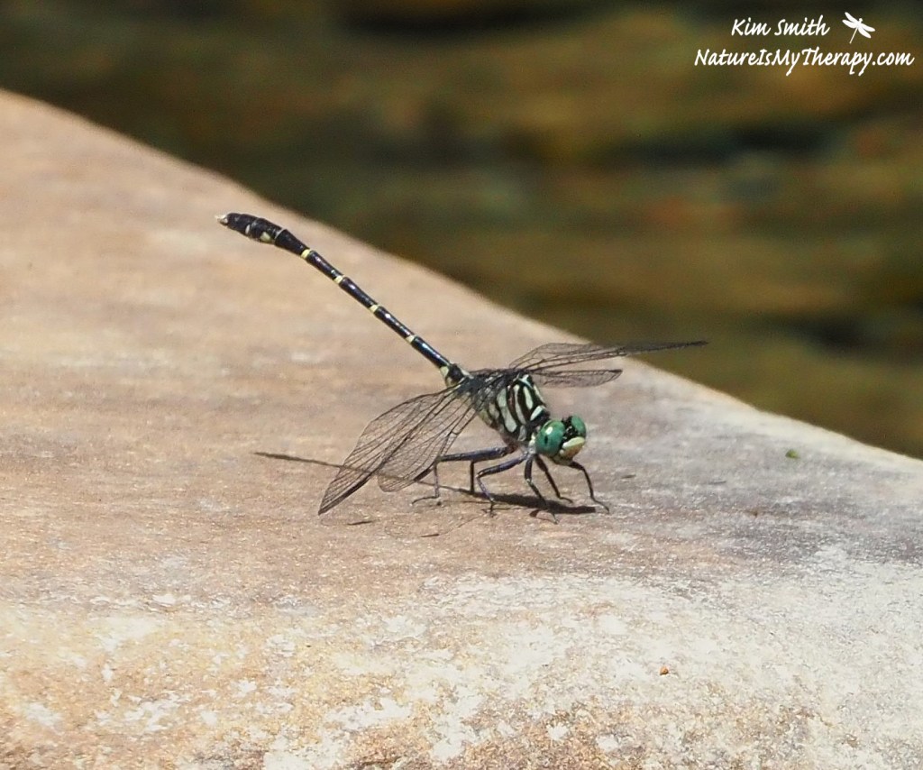 Aren’t they pretty? Everywhere I turned there were more of these small least clubtails perched on rocks. But still no snaketail. Feeling my frustration slowly mounting, but determined not to let it get the best of me, I sat down on the rocks a couple times to just breathe and soak in the sunshine and fresh air. But finally it got to a point that I realized I might not find them, so I reluctantly started making my way through the creek toward the base of the staircase. The dreaded staircase. Imagine feeling dejected and still having to climb those stairs. It was brutal.
