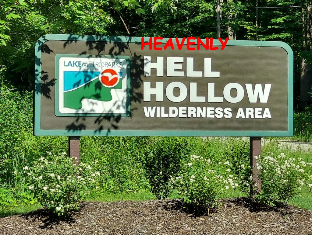 I feel relief that this special dragonfly is still living in this place, at least for now. Maybe I shouldn’t make such a big deal out of it, because I know there will come a day when they’re not there anymore and it will be sadder because I’ve celebrated them so much. But the experiences I’ve had with this emerald dragonfly have been frustrating, confusing, exciting, painful, suspenseful, and joyful. And each time I get to see one of them at Hell Hollow, I celebrate our mutual triumphs — mine for persevering and the snaketail’s for survival. My legs hurt for days afterward, but it’s so worth it! And that’s why I’ve renamed this place “Heavenly Hell Hollow.” I wonder if they’ll change the sign. 🙂