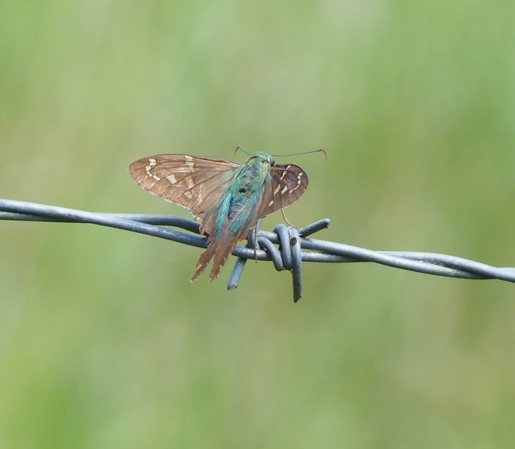 This skipper was photographed on the previous day when I was road-tripping with Alcenir. It conveniently perched on the barbed wire pasture fence so I could shoot this easily from inside the van.