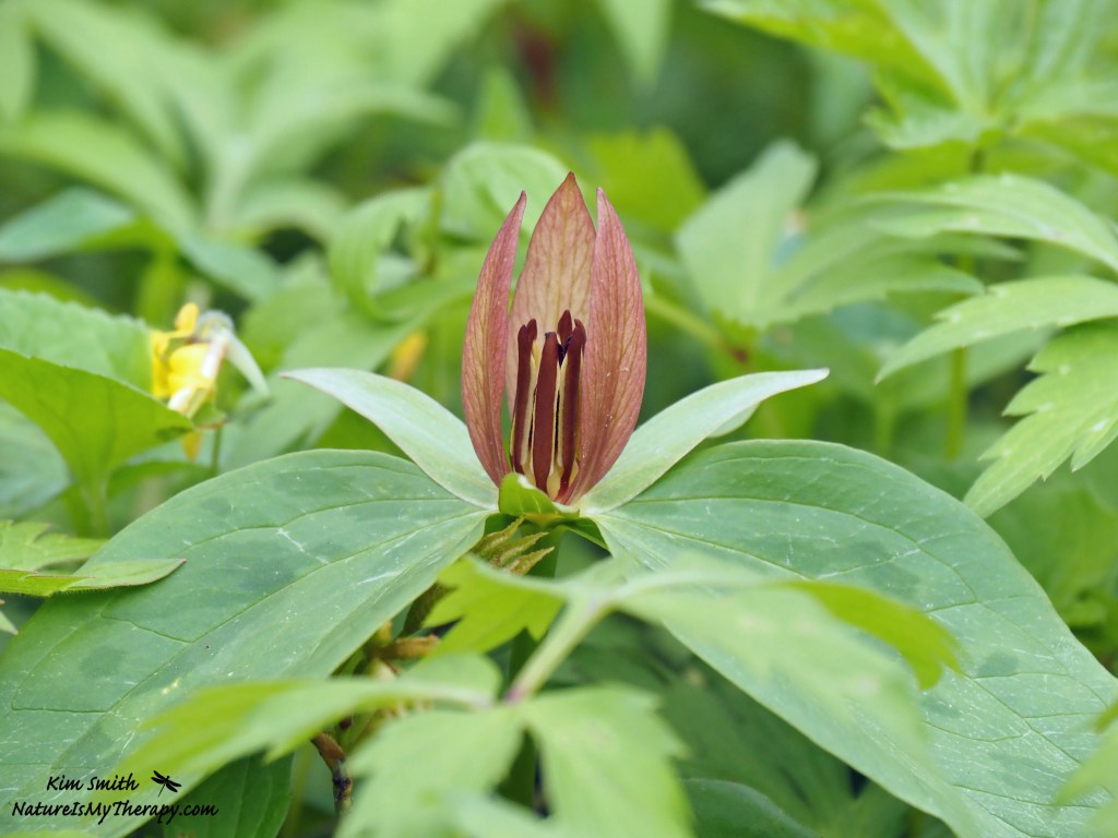 Toadshade is one of the best flower names around, and even though botanists urge us to learn the scientific names of plants to avoid confusion, I can’t resist using ‘toadshade’ instead of its official name of Trillium sessile. This time I wanted to get my camera up close and personal with the flower, but most of them are too tightly closed to see much inside. This one allowed me a nice photo though.