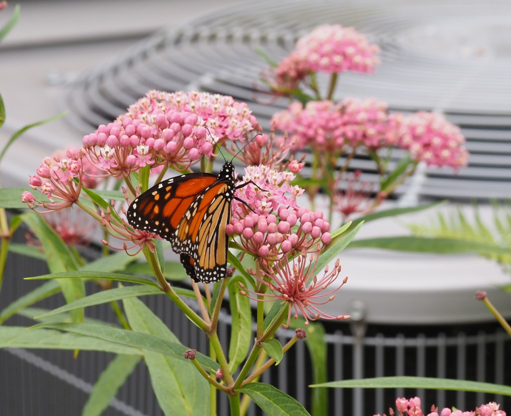 Addendum: Oh, by the way, I’m hoping I won’t have to cut this milkweed down for the service guy. I’ll try cutting him a new path by removing the ferns and some hostas that are hidden in the first photo. And then I’ll politely ask him to step over the stem of this plant. I’m also worried that he’ll be bothered by all the bees and wasps so close to his work space, so if he’s concerned about them I suppose I will have to cut it. But if so, I still have plenty of other milkweed in the garden, so it’s not a tragedy either way. I just like to be dramatic, as you know. I hope you enjoyed this as much as I did!