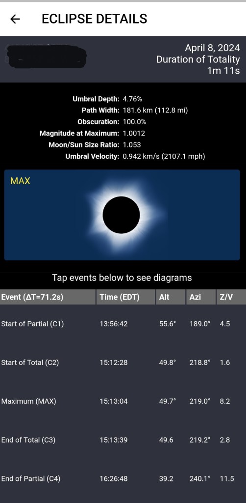 Screenshot from Totality app for my location