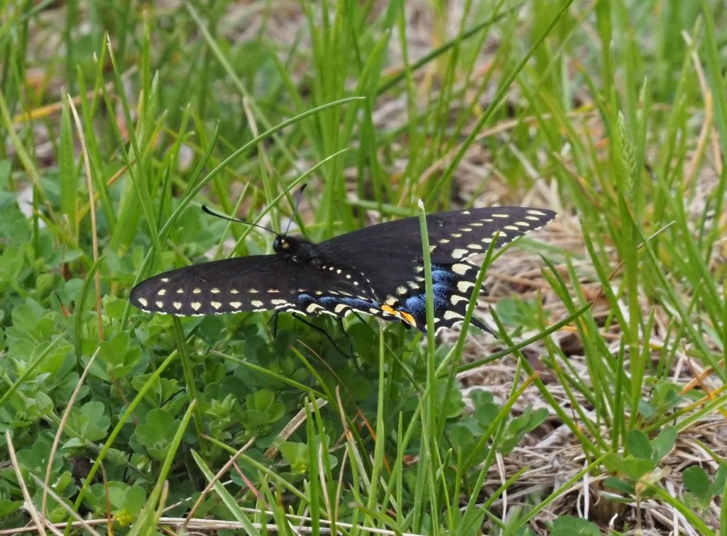 And look who showed up today, flitting around the golden Alexander: a black swallowtail! It’s amazing how much wildlife shows up when you provide the habitat they need. Host plants bring in a diversity of fascinating insects, and the birds come in because there are so many seeds and insects. In fact, since my native garden is flourishing, I’ve stopped putting out seed feeders at all. I watch the finches feeding on my garden all winter long, pulling seeds from the flowers I’ve left standing just for them. And since I leave lots of leaves in the garden beds, the birds have a great time flipping leaves over to find yummy bugs hiding below. It’s wonderful to see how the natural world works to keep things in balance and make sure everyone has food.