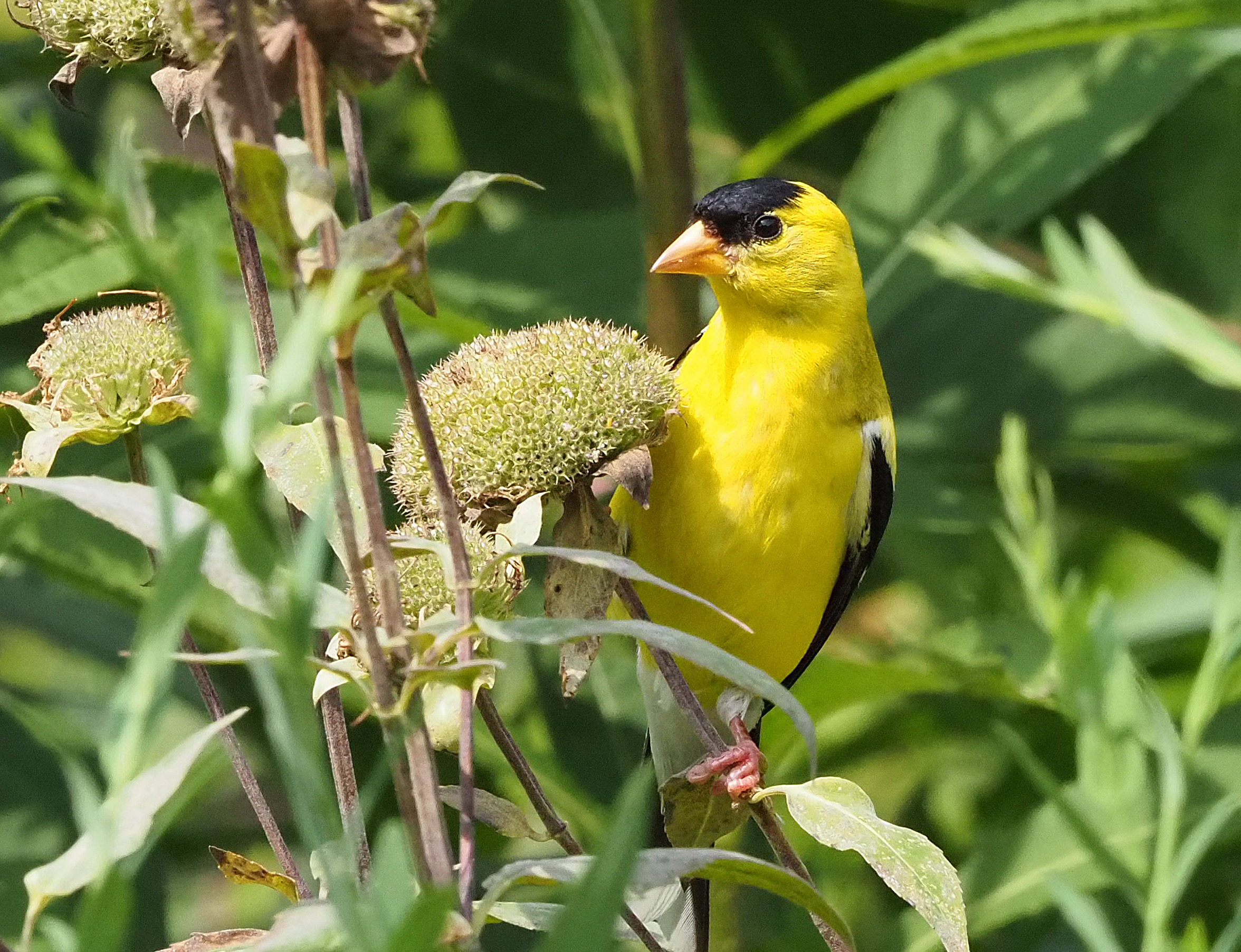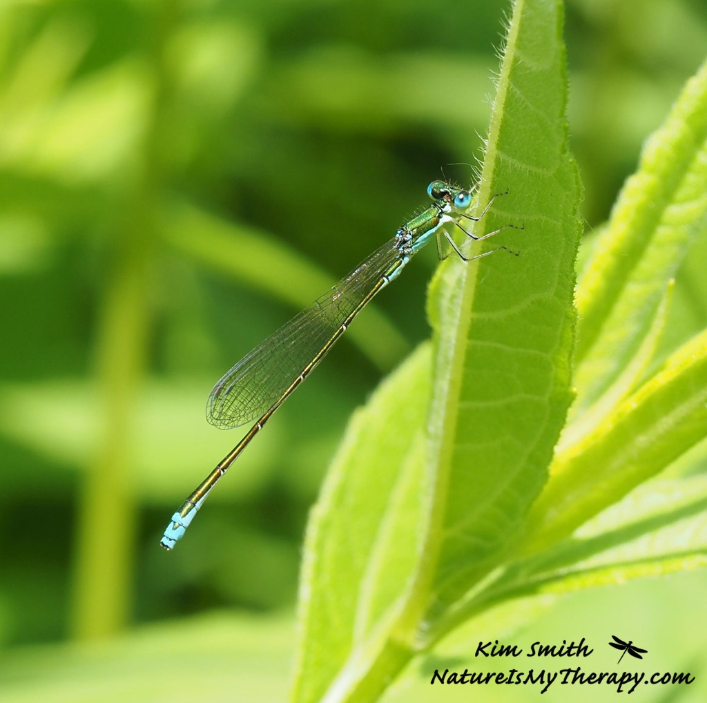 And just last week I was stunned to find a teensy tiny Sedge Sprite floating around inside the tall stems of my sawtooth sunflower (Helianthus grosseserratus). This one-inch damselfly is usually found near marshy ponds, fens, and places with a lot more water than I have here. But despite that, he was here. Incredible.