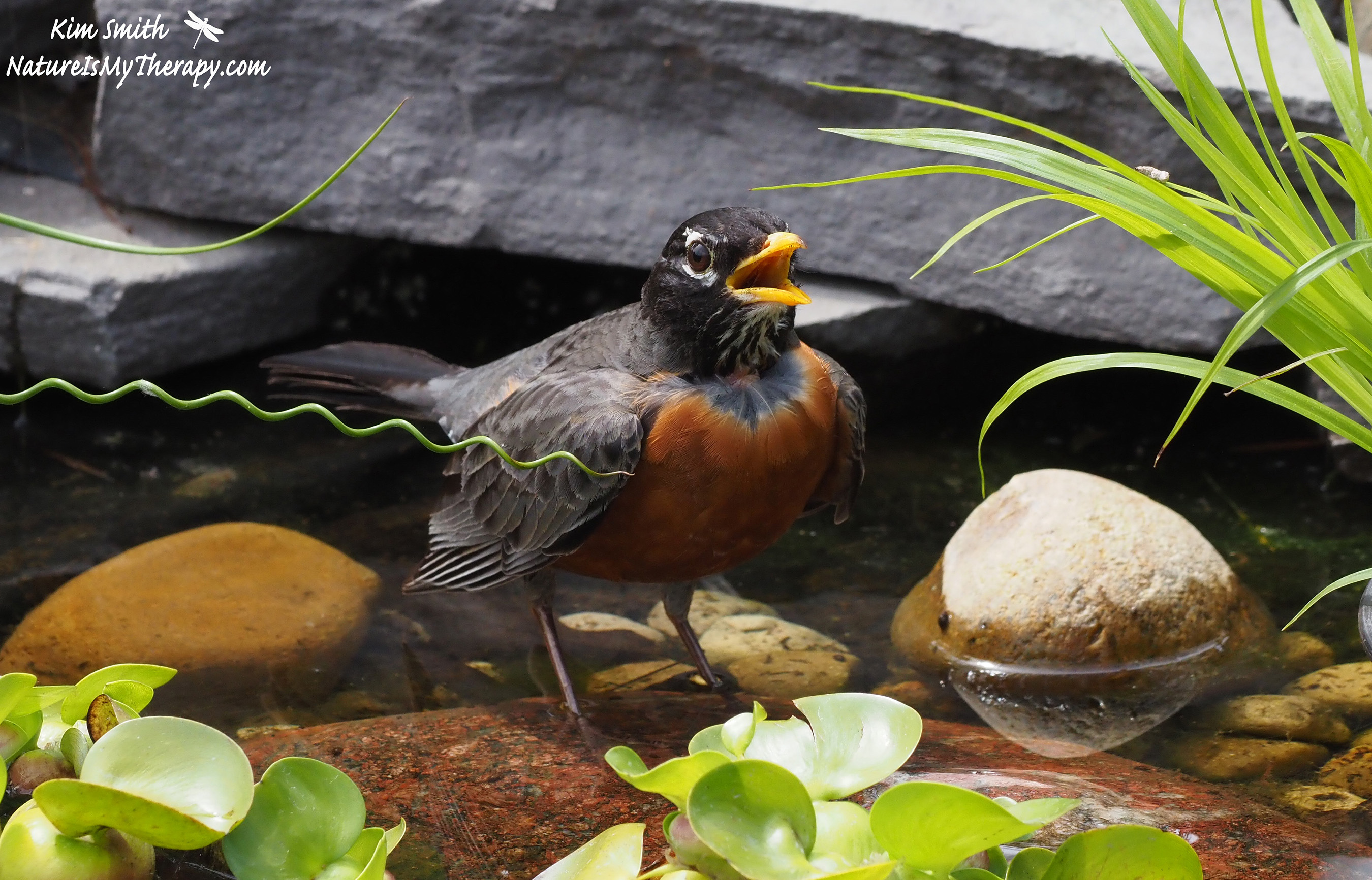 If you have a bird bath, you’re most likely well aware of the exuberance shown by the American robin when it comes to taking a bath. They deserve the rubber duckie award for all the splishing and splashing they do.