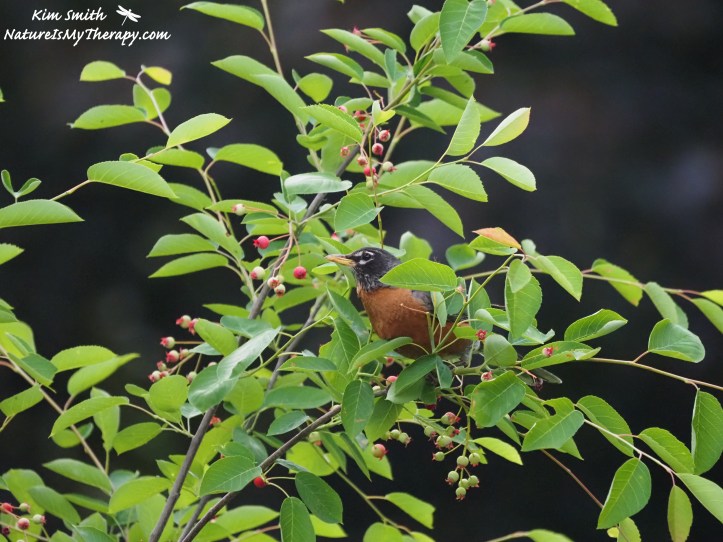One lovely afternoon recently as I sat watching a cardinal feeding on serviceberries in my garden, I felt a sort of gratification I’ve not had in many years in regards to birds. Instead of always chasing “better” and “different” species in distant locations, I found joy in watching the birds who live in my own yard, the ones who are so common we often ignore them. How sad is it to not notice the eye-popping blues of a blue jay? Or the knock-your-socks-off beauty of a male northern cardinal in his bright red breeding plumage? And even the subtler beauty of a female northern cardinal? The American robin isn’t as brightly colored as those two, but he sings a joyful song that brings a quiet smile to my face as I listen. These birds remind me that we often miss the wonderful parts of our everyday lives as we go searching for the supposedly “greener grass” somewhere else. I’m loving the peace of being at home more these days, sharing my time with the birds, dragonflies, and other insects who live here with me.