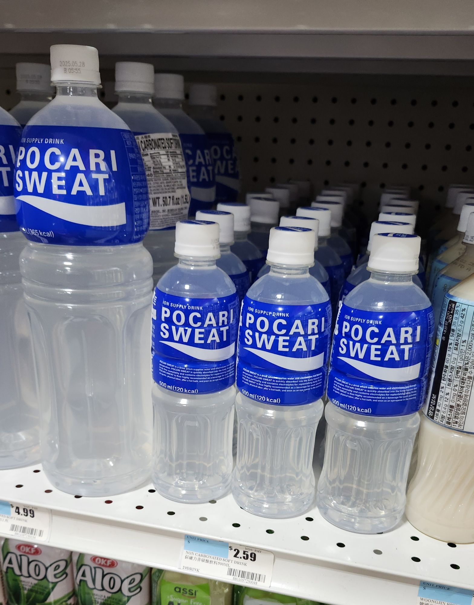 I had to really force myself to make this outing to the store today because my ‘depression brain’ keeps telling me I don’t need to leave the house. I’m so glad I was able to stifle that voice today because I had a beautiful moment in the Asian supermarket: I smiled for the first time in weeks! I’d nearly forgotten what it felt like to smile. And what was it that brought a smile to my heart? Pocari Sweat! Back in the 1980s we always laughed when we came across this beverage in vending machines around Tokyo. Would you want to drink a product with that name?! It’s a sports drink that replaces electrolytes, like Gatorade. I’m sort of surprised that they haven’t changed that name over the years, but apparently it’s still popular. I remember tasting it one time and thinking it really did taste like sweat.